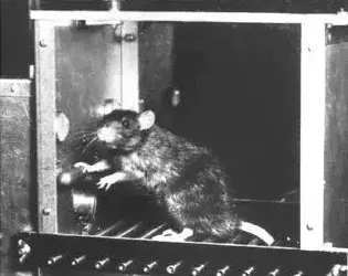 当一只饥肠辘辘的老鼠无意中碰到控制杆,老鼠便会获得食丸的奖励。